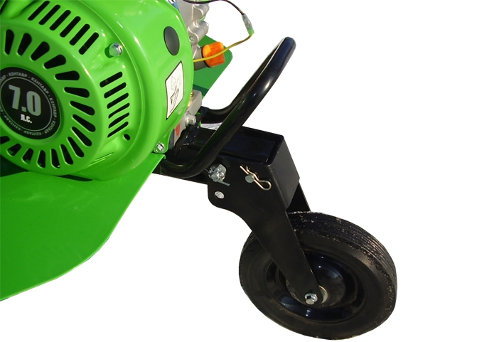 1. В комплекте с мотоблоком не поставляются пневматические колёса. Для доставки мотоблока к месту проведения работ в конструкции предусмотрено откидное транспортировочное колесо. Этого достаточно, чтобы с лёгкостью перемещать мотоблок по участку. При желании Вы можете доукомплектовать мотоблок колесами размером 3,50-6 либо 4,00-8.